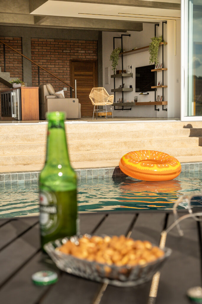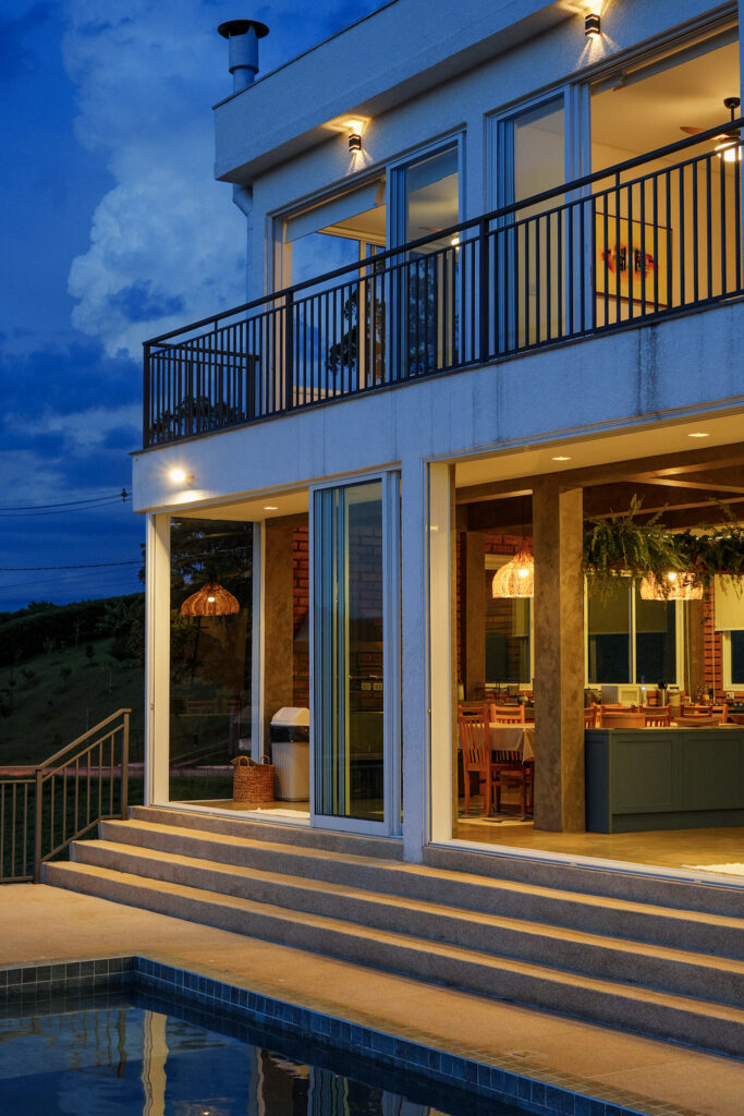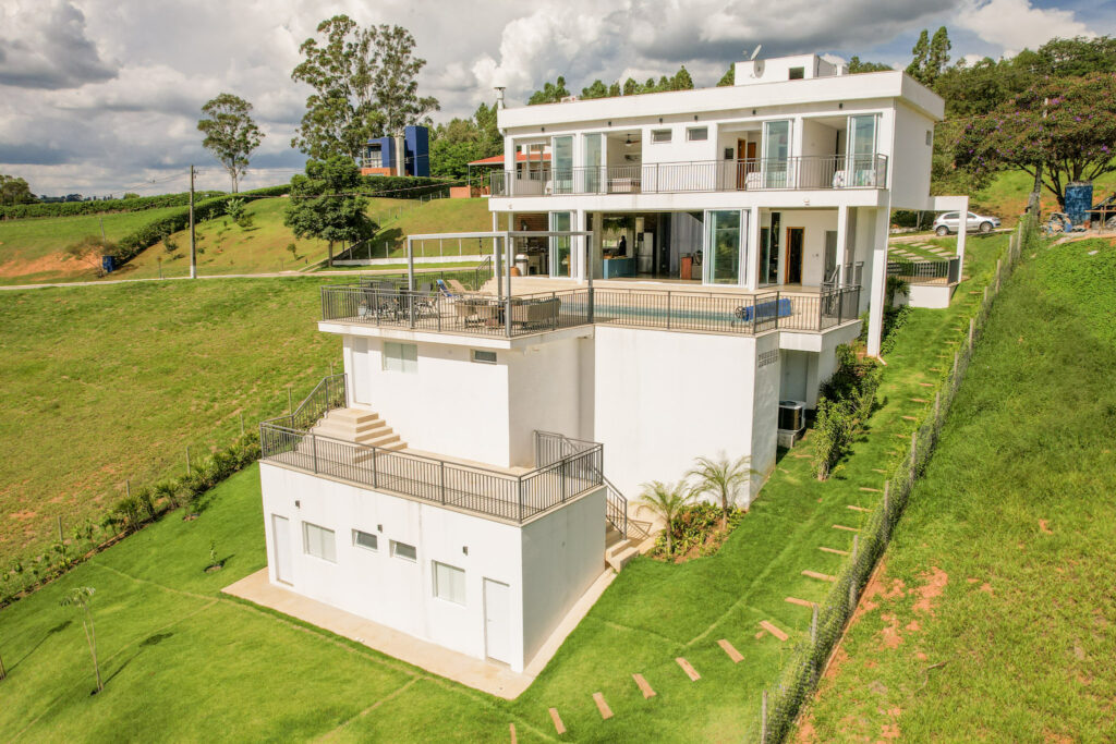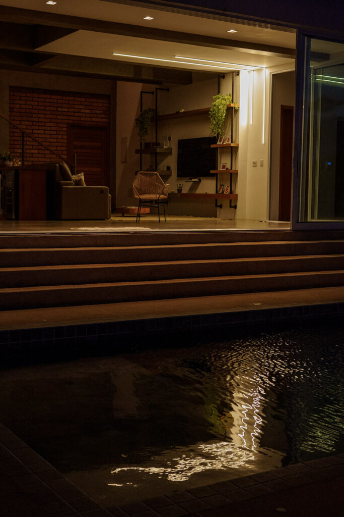 Dia da diária – Caio nas fotos, Giba no vídeo e a Aline na organização dos espaços e do horário. Em uma casa grande como essa, 7 quartos, sala e cozinha amplas, área de lazer, garantir uma boa luz e o registro de todos os espaços, necessita de muita organização. Lutamos como o clima, tempo nublado com algumas saídas de sol, que precisavam ser aproveitadas para o registro de drone. Os registros do fim da tarde, ficaram lindos e as fotos do inicio da noite então, maravilhosas. A edição das mais de 1000 fotos aconteceu no dia seguinte, e os mais de 200 takes foram editados nos dias seguintes para virar um vídeo de 1 minuto.